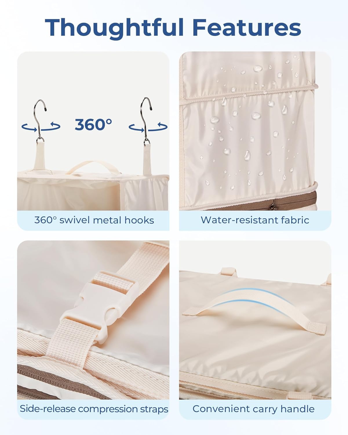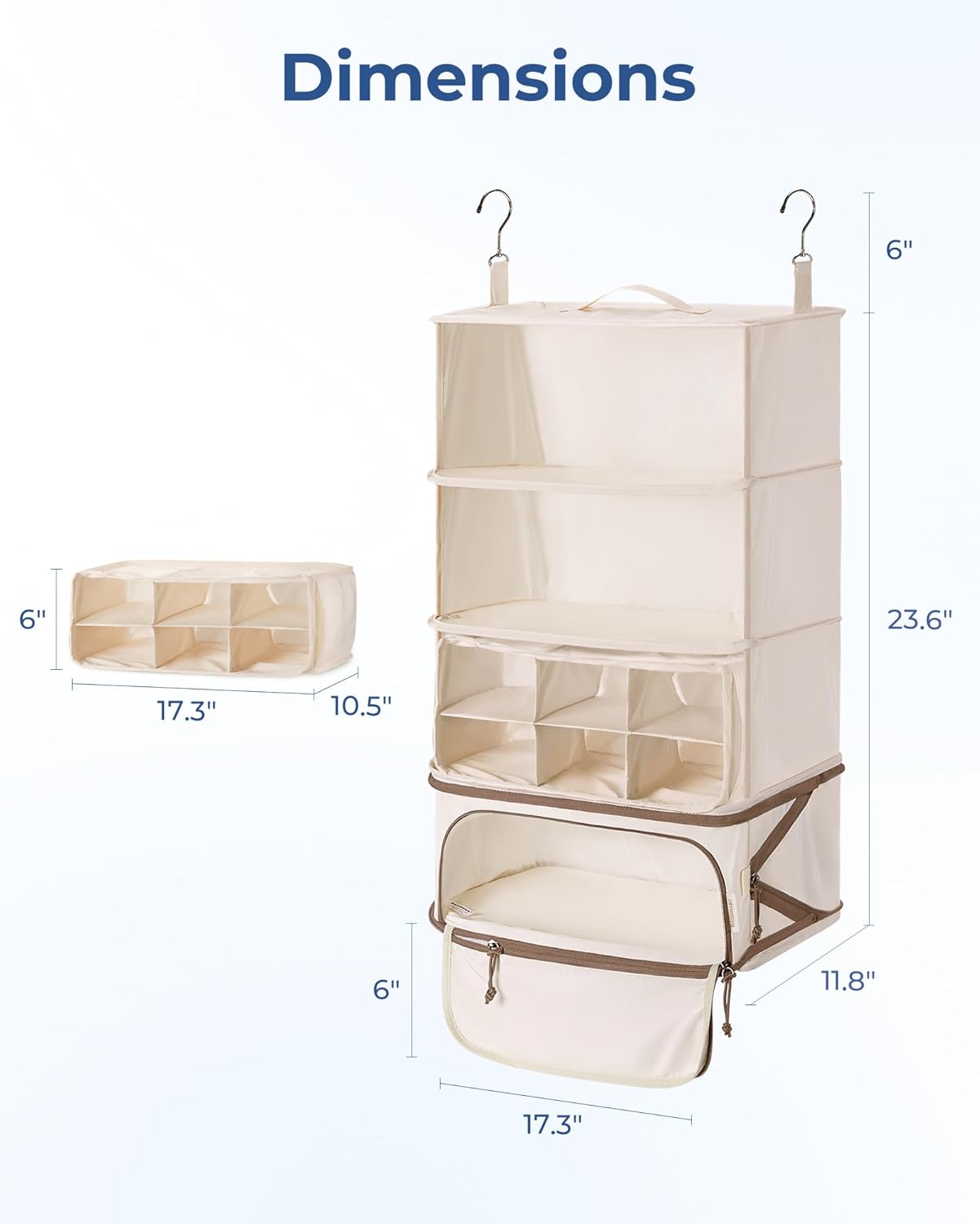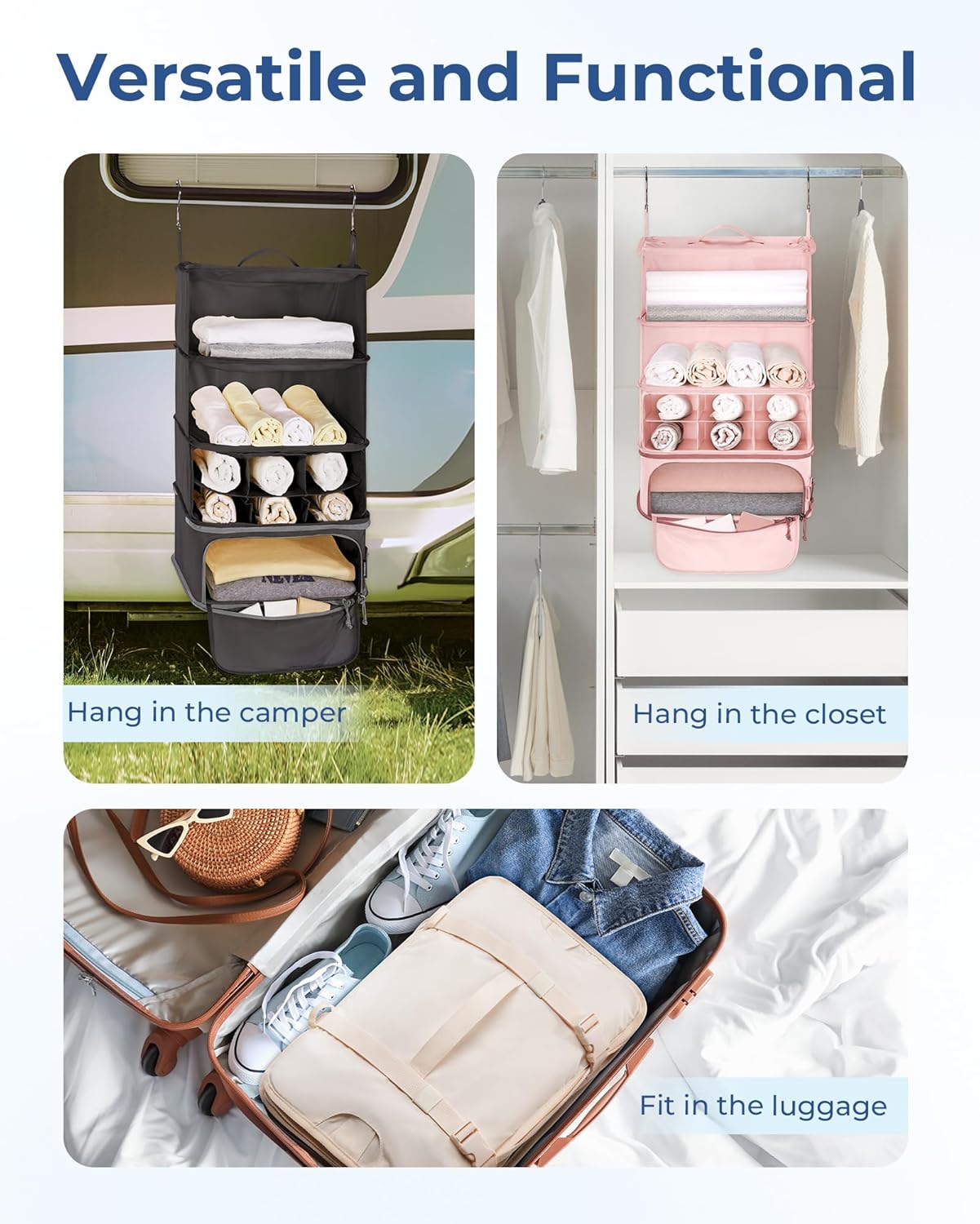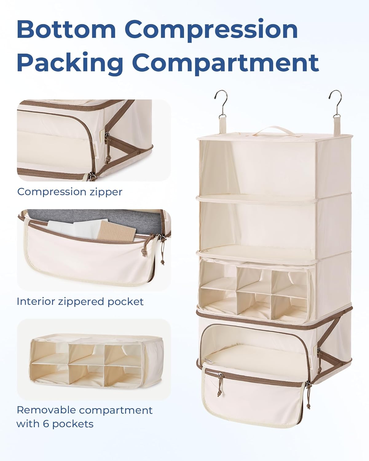 Hanging Packing Cubes for Travel, Hanging Shelves for Suitcases Organizers, Compression 4 Shelf Closet Organizers, Travel Shelves for Cruise Ship Essentials