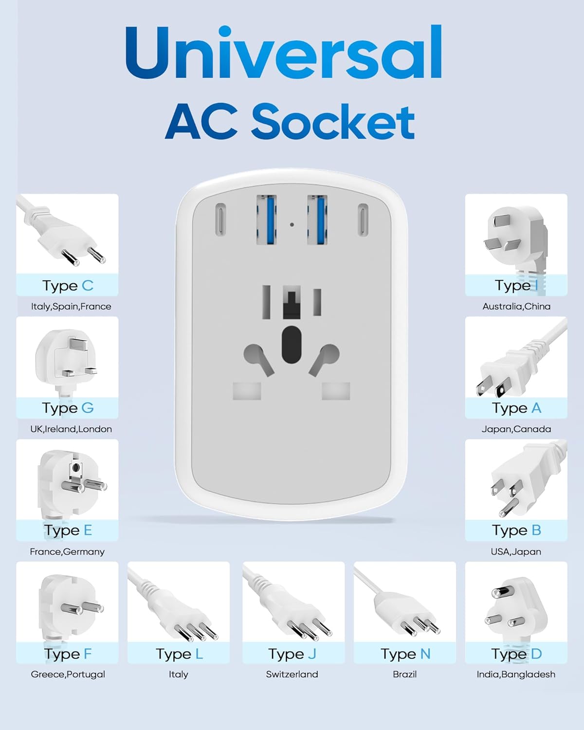 Designed to be compact and portable, this adapter is perfect for international travel to countries such as the UK, Europe, Australia, and many more. The Type A/C/G/I plug options ensure compatibility in over 150 countries, making it the ideal choice for jet-setters and frequent travelers.