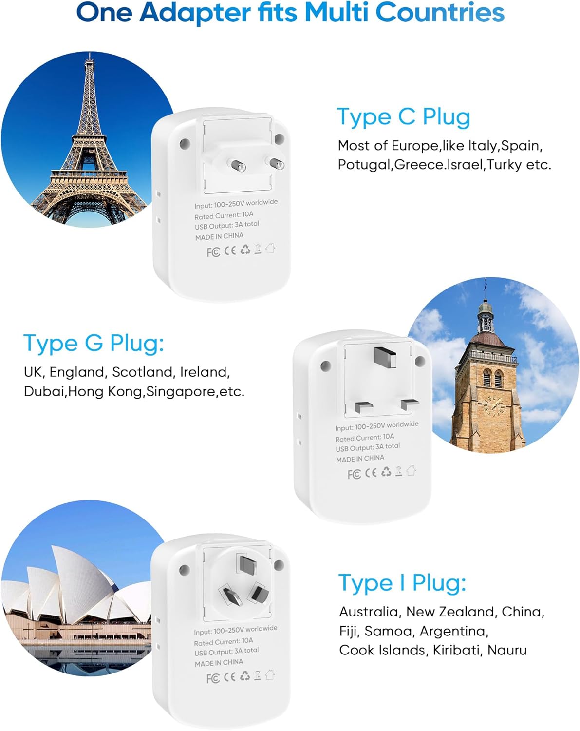 Introducing the ultimate travel companion for globetrotters – the Universal Travel Adapter with Type A/C/G/I Plug Adapter! Say goodbye to the hassle of carrying multiple adapters for different countries and simplify your travel experience with this all-in-one solution.